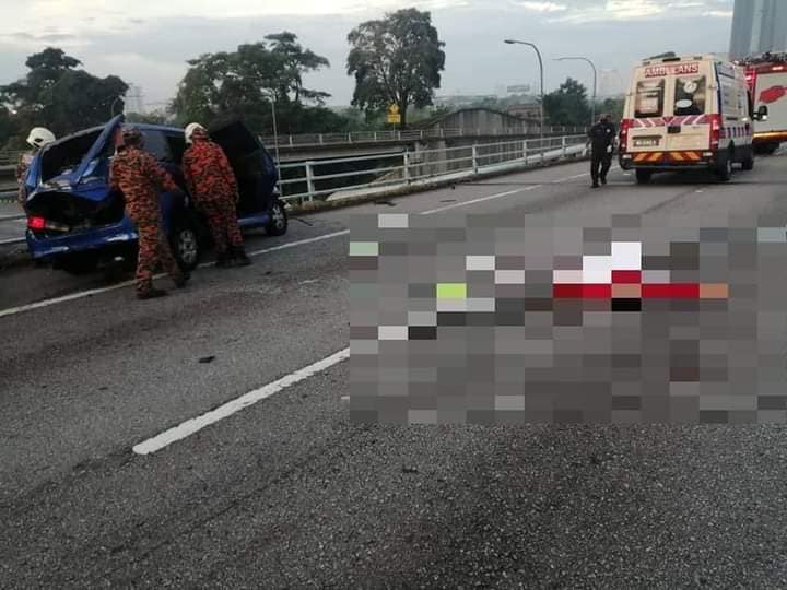 DUA lelaki maut dan salah seorang tercucuk besi pengadang jalan selepas tercampak keluar apabila kenderaan pelbagai guna (MPV) jenis Toyota Avanza dinaiki mereka terbabas hingga melanggar pembahagi jalan di jejambat Padang Jawa, Seksyen 7, di Lebuhraya Persekutuan, hari ini.