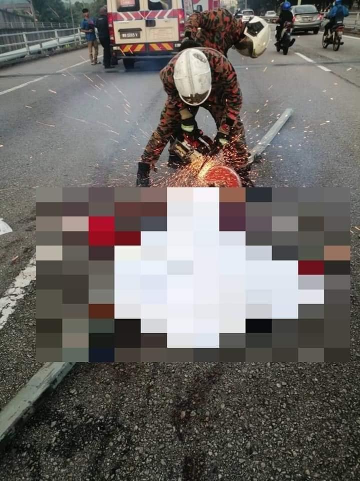 Pemandu, Nazirie Awas (pemandu), 21, mengalami cedera parah akibat tersepit, dan seorang penumpang lagi Daris Fariz, 24, cedera ringan.