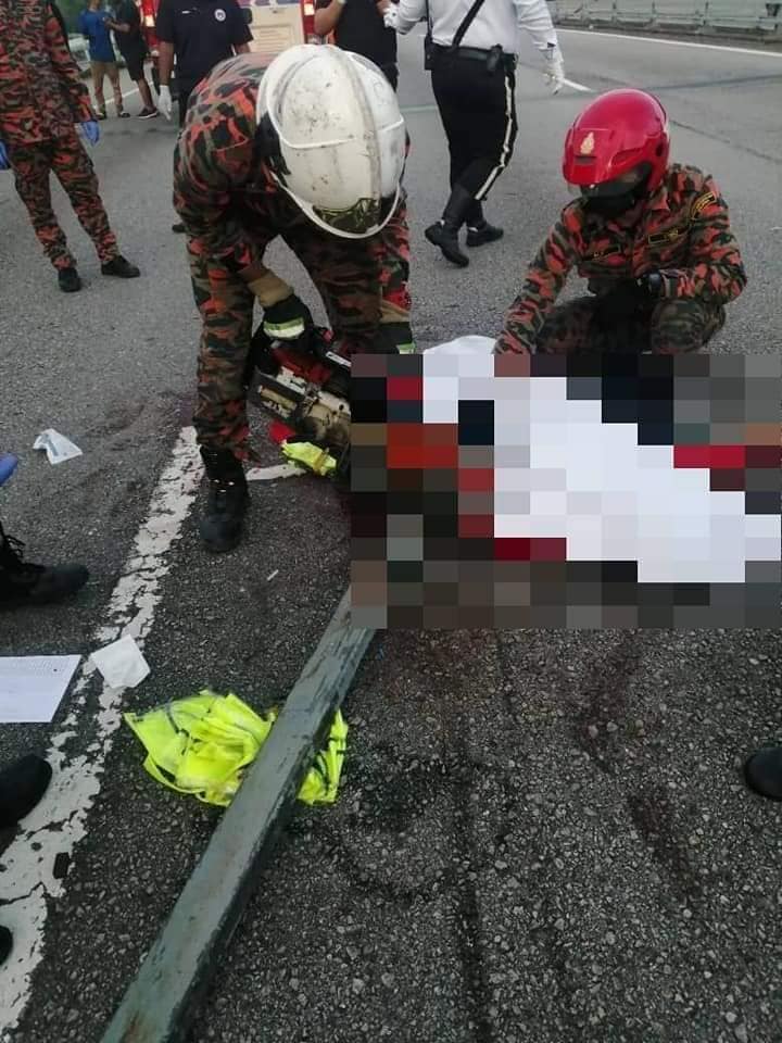 Mangsa Merioh Asok, dan rakannya Yahayah Ampiu yang kedua-duanya berusia 26 tahun disahkan meninggal dunia di tempat kejadian. Kedua-dua mangsa maut tercampak keluar sejauh 4.5 meter, dan Merioh dilaporkan tertusuk besi pengadang jalan.