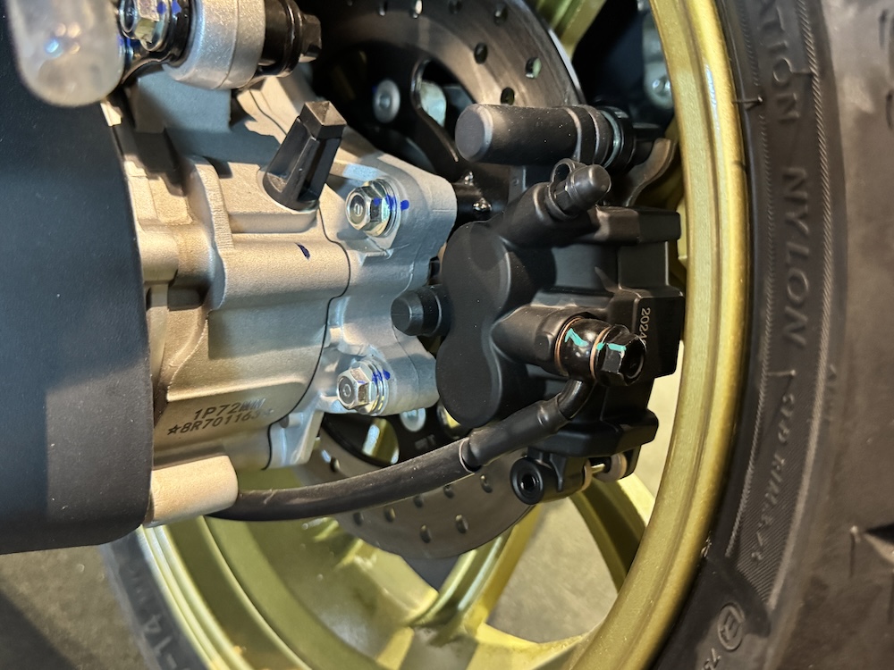 - Brek cakera tunggal 260mm (depan) dengan kaliper 4-piston (opposed) di depan, dan brek cakera 240mm dengan kaliper dwi-piston (belakang).