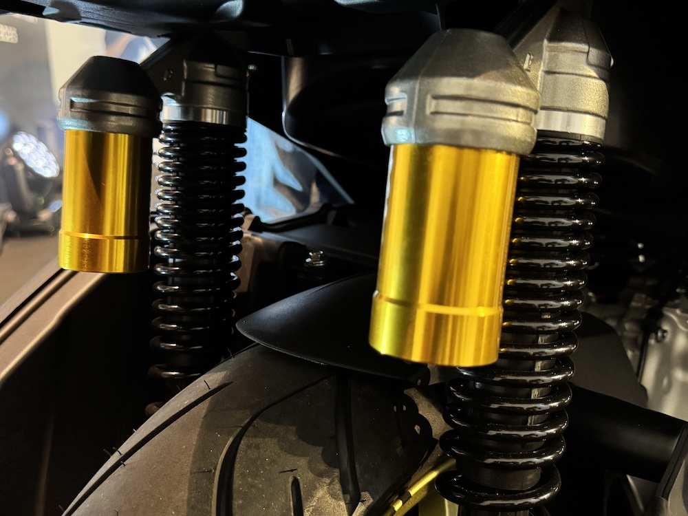 - Fork teleskopik standard 37mm di depan, dan dwi-absorber dengan subtangki (belakang).