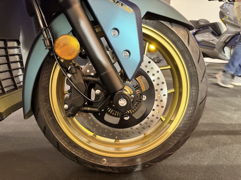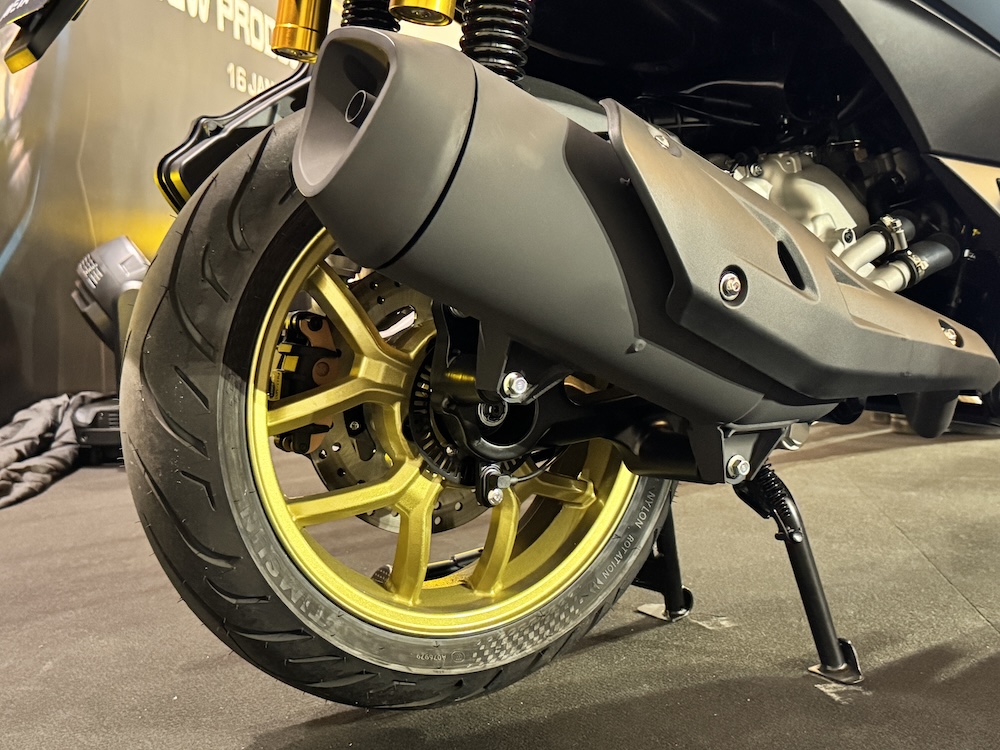 - Rim depan 15 inci 120/70 (depan) dan 14 inci tayar 140/70 (belakang).