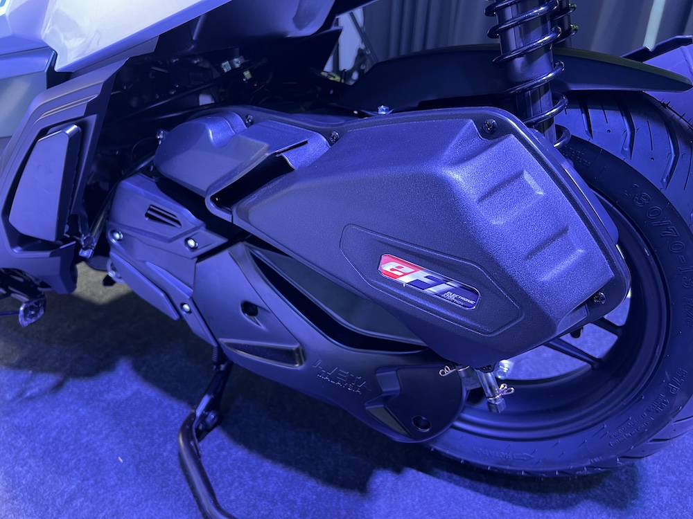 Kuasa disalurkan melalui transmisi automatik CVT dengan sistem suntikan bahan api elektronik (EFI) Bosch untuk kecekapan dan prestasi lebih lancar.