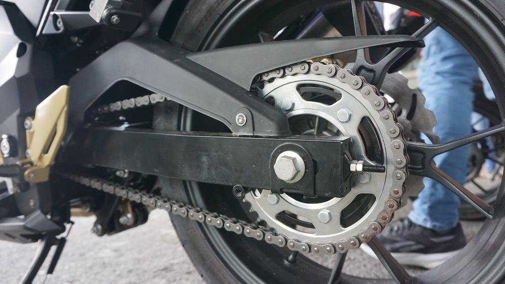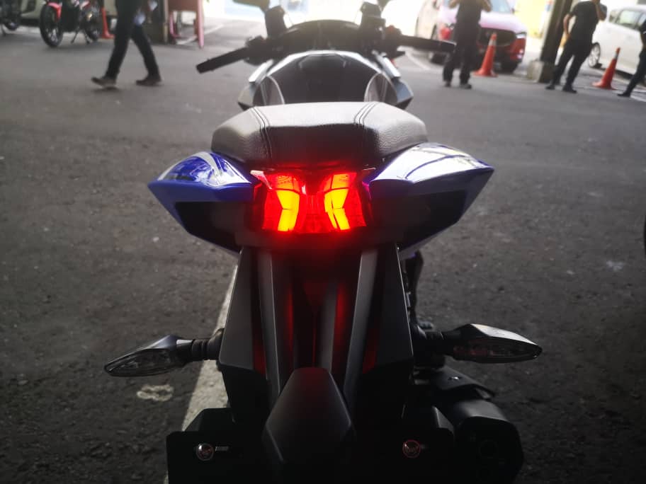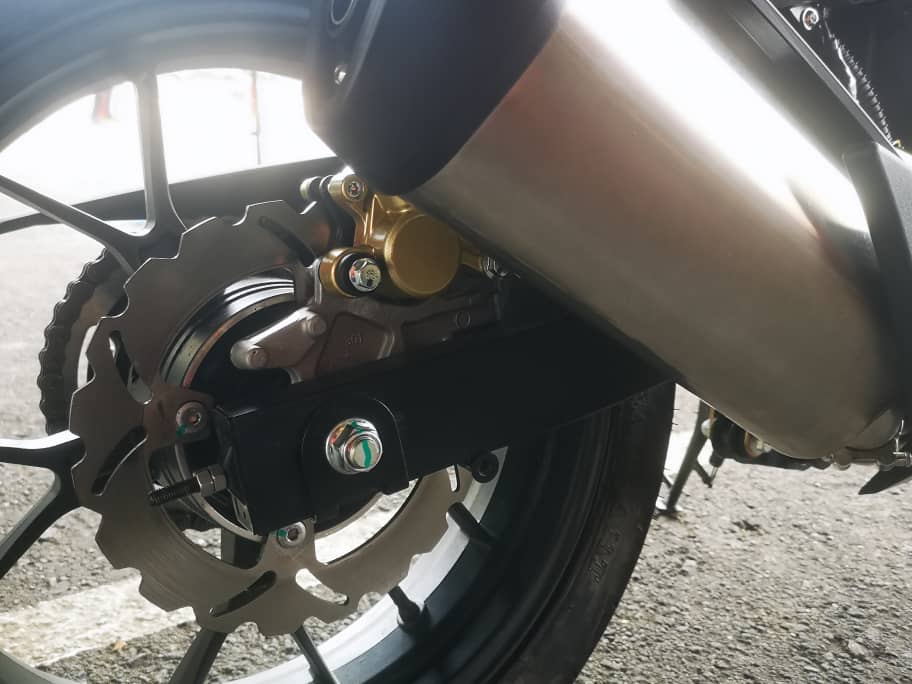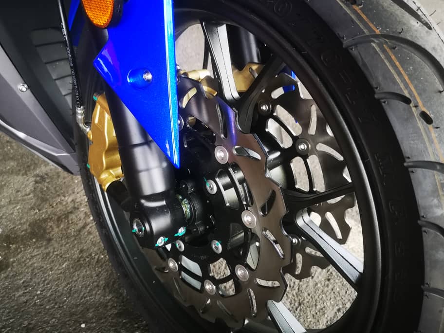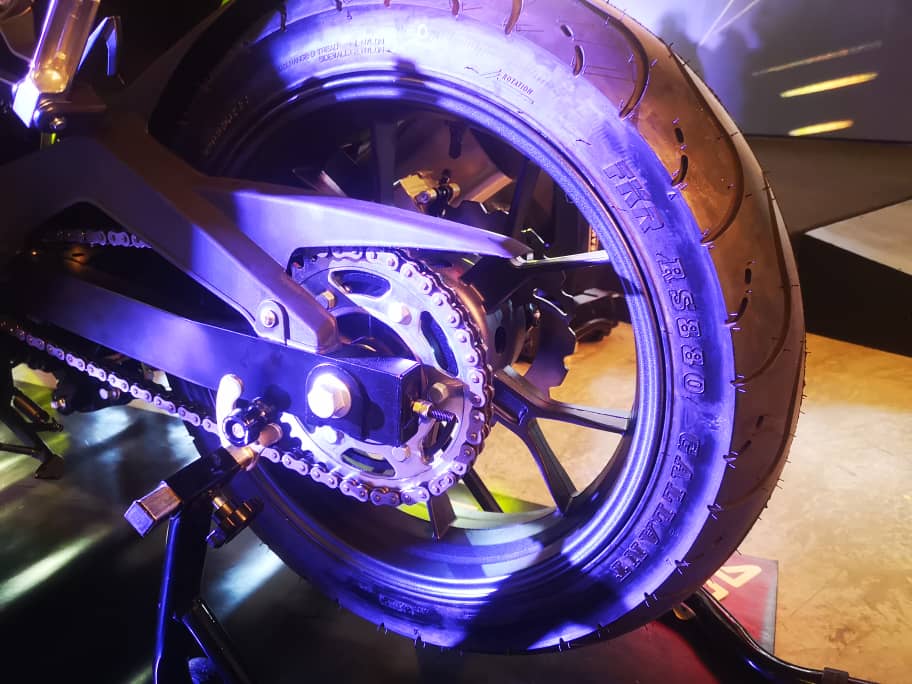 - Rim aloi 17 inci dengan tayar 110/70 (depan), dan 150/70 (belakang).