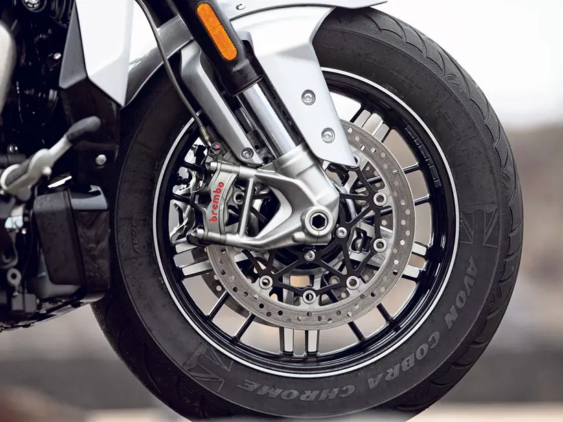 Kebanyakan fork motosikal dan kepala stereng (headstock) adalah selari tetapi Rocket 3 diposisikan pada sudut berbeza. Fork cruiser ini berada pada posisi 32°, sama seperti model lama Rocket III 2.3L. Tetapi kepala stereng ditetapkan pada darjah lebih curam, 27.9°.
