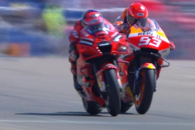 Bagaimanapun, Bagnaia tenang menyingkirkan Marquez untuk mendapatkan kelebihan di litar yang terkenal dengan banyak belokan kiri itu. Pelumba Sepanyol itu mencuba lagi di Turn 12 tetapi kemengan lebih memikhak kepada Bagnaia.