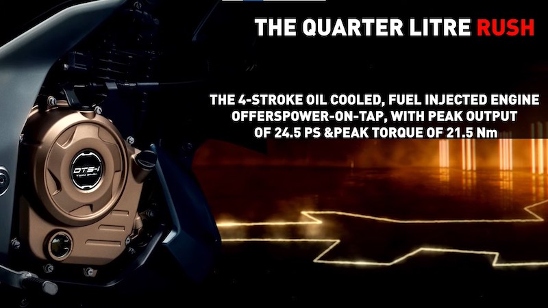 - Bajaj Auto memasang enjin 4-lejang silinder tunggal DTS-i 249.07cc dengan sistem penyejukan minyak dan teknologi sistem suntikan bahan api, menghasilkan kuasa 24.1hp @ 8,750rpm dan tork 21.5Nm @ 6,500rpm.
