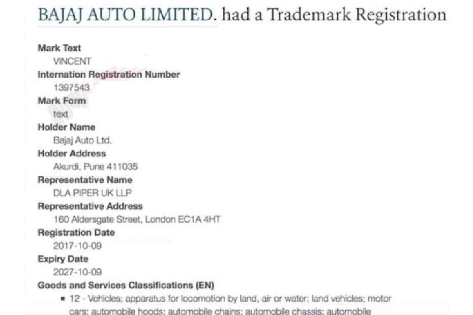 Timbul pula satu cerita baharu iaitu Bajaj Auto di India ialah pemegang hak jenama Vincent sejak 2017! Apa yang mencetuskan tanda tanya ialah mengapa pengeluar itu tidak membuat sebarang pengumuman mengenai pemilikan jenama Vincent.