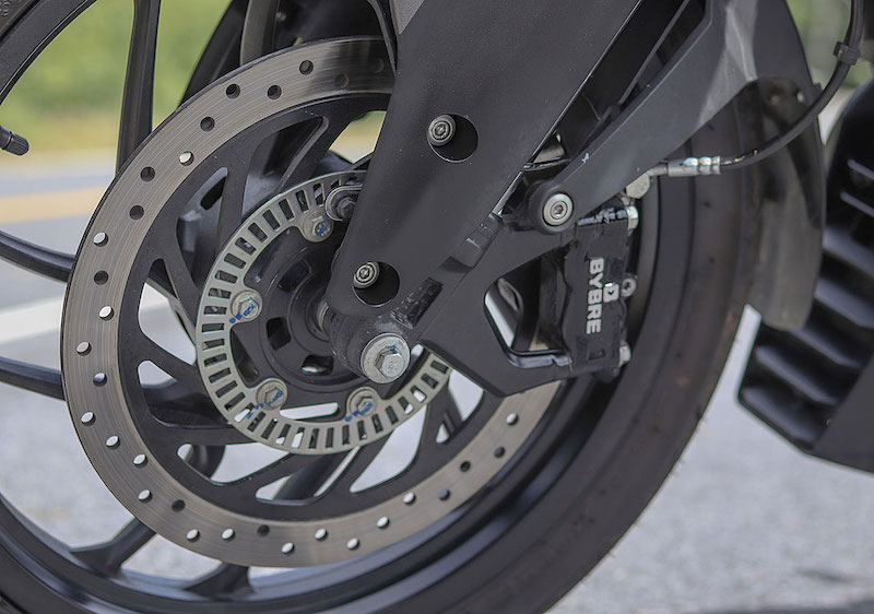 - Sistem brek menggunakan cakera tunggal 300mm (depan), dan cakera 230mm (belakang) dengan kaliper brek Bybre. Juga dilengkapkan Sistem Brek Anti-Kunci (ABS) dwi-saluran.