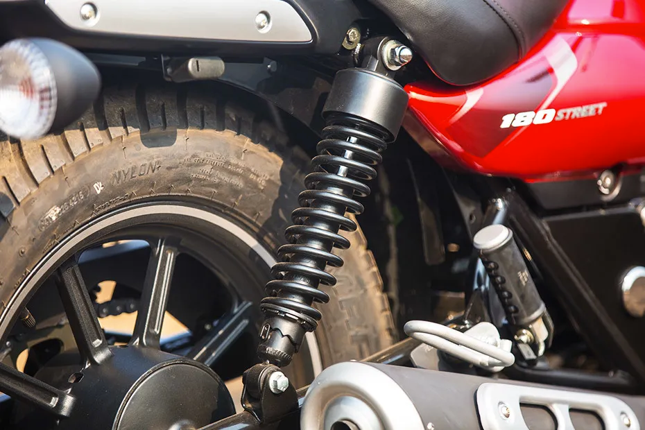 Avenger Street 180 masih mengekalkan suspensi konvensional, iaitu fork teleskopik dan absorber kembar di belakang. Tuga membrek diuruskan brek cakera tunggal 250mm di depan dan brek dram 130mm di belakang. Rim 17 inci (depan) dan 15 inci (depan) masing-masing dibaluti tayar 90/90 dan 130/90.