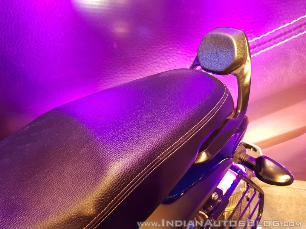 Menariknya, Bajaj Auto melengkapi V15 dengan penyandar belakang daripada material kusyen hitam bersama logo V. Penambahan aksesori baharu itu adalah untuk keselesaan pembonceng.