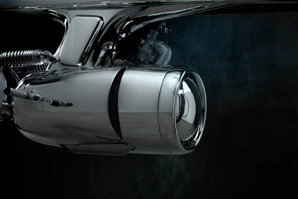 Motosikal berkongsi inspirasi Sci-Fi itu sama seperti model lain yang terlebih dahulu dihasilkan. Rekabentuk badan dibentuk menggunakan keluli tahan karat berkilat dan disempurnakan menerusi inspirasi futuristik posisi turbin di bawahnya. Pelindung turbin itu menjadi rumah bagi blok enjin yang memberikan karakter unik pada motosikal itu.