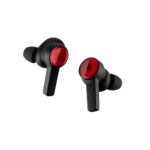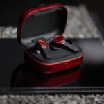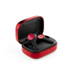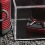 Bagi Ferrari Collection, putik telinga (earbud) sebelah kanan tertera logo hitam foil lencana Ferrari, diposisikan bawah kaca merah ikonik, dipotong dan digilap untuk kilauan cermin