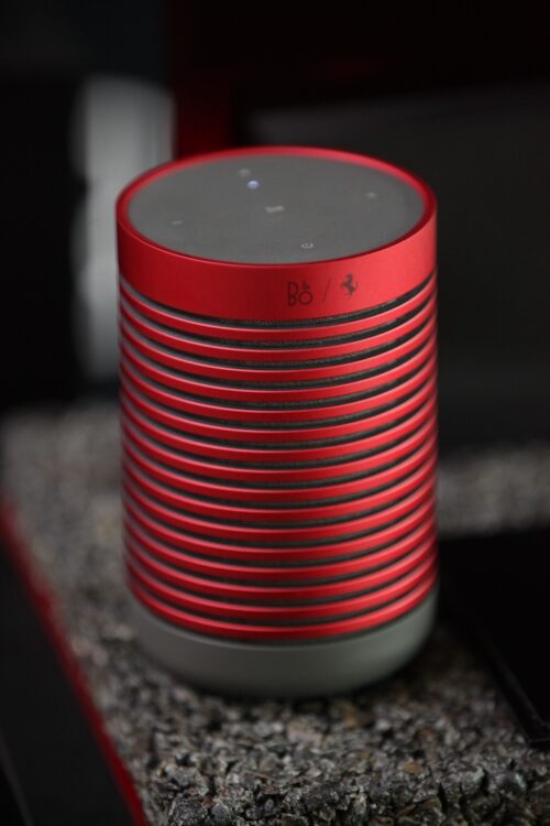 Beosound Explore didatangkan dengan tera laser logo kuda Ferrari, dan karabiner hitam menonjol untuk sebarang aktiviti mencabar. Pembesar suara dua lapis badan ini dianod dalam warna merah dan hitam supaya gril menyerlah dengan kemasan gelap.