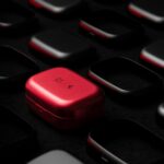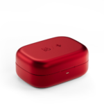 Di bawah mangkuk telinga, gril pembesar suara titanium dianod dengan tona merah pucat yang dipilih khas untuk produk kolaborasi ini.