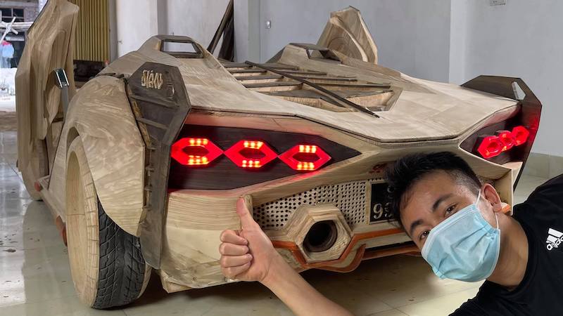 Replika supercar kayu dihasilkan Truong Van Dao itu siap boleh dipandu kerana turut dipasangkan motor elektrik, manakala kedua-dua pintu sayap camar (gull-wing) boleh dibuka menggunakan butang kawalan jauh.