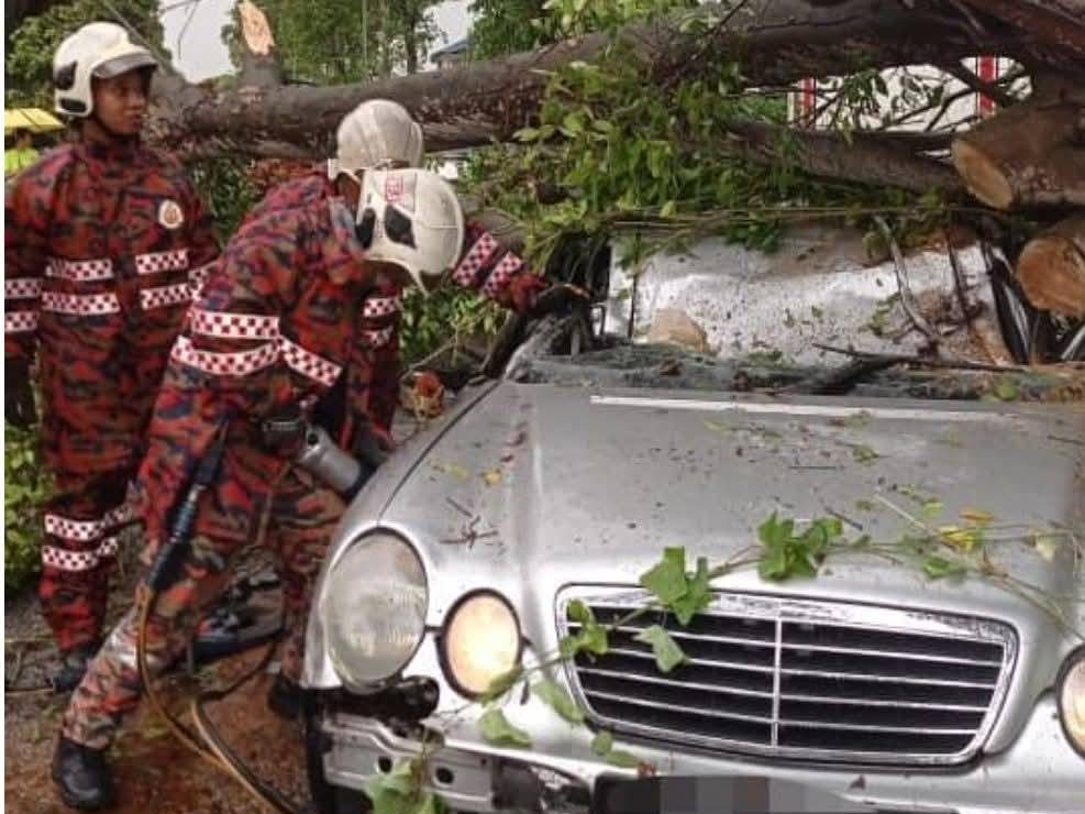 Sebaik saja tiba, bomba mendapati sebatang pokok menghempap kereta tersebut dan mangsa dikeluarkan jam 7.12 malam dengan memotong pokok berkenaan. Anak perempuan mangsa berumur 13 tahun dilaporkan selamat dan tidak mengalami kecederaan.