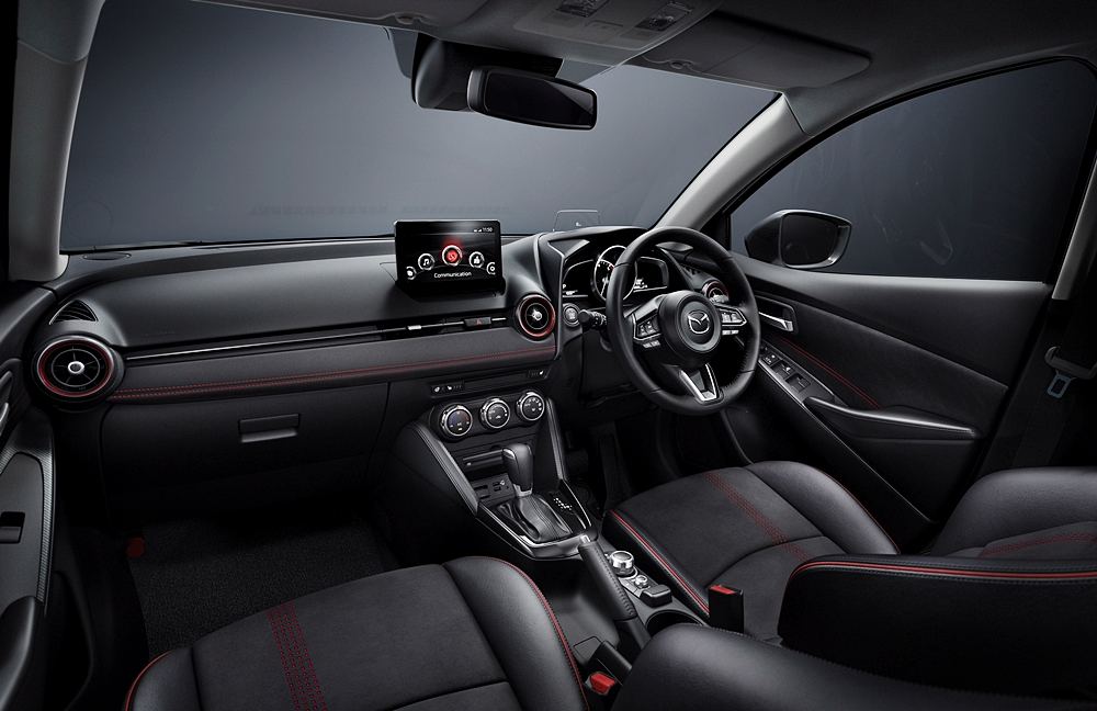 Tampil dengan bumbung hitam kilat, kerusi semi-kulit dengan kemasan merah, panel pemuka jenis sentuh lembut hitam dan sulaman benang merah.