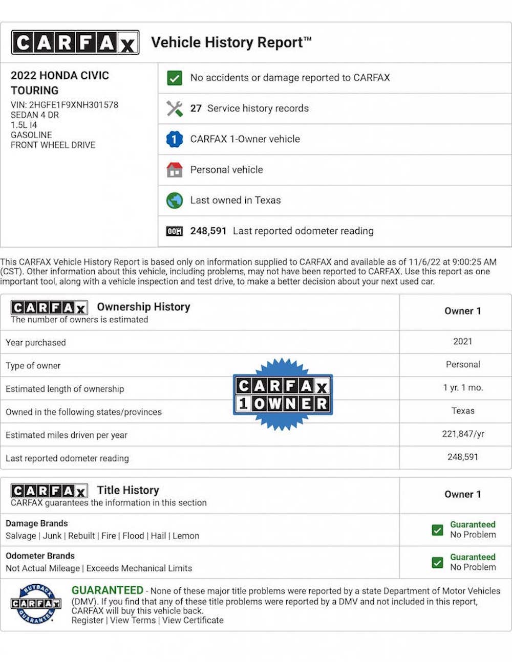 Sedan buatan Kanada ini ialah model keluaran 2022 yang baru berusia 13 bulan, tetapi sudah mencatat jarak pemanduan sejauh 248,740 batu (400,300km). Iklan jualan Honda Civic (2022) itu ditemui Jason, seorang peminat tegar Honda yang juga pakar pelatih produk.