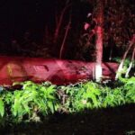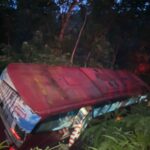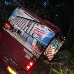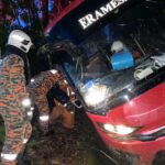 Apabila sampai di lokasi kejadian, tayar depan kanan bas sudah pecah dan menyebabkan pemandu berusia 63 tahun hilang kawalan dan terbabas masuk ke dalam longkang di kiri jalan."