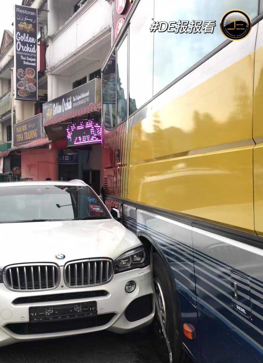 DUA pelanggan sebuah restoran nyaris dirempuh sebuah bas yang mengundur tiba-tiba hingga ‘menyapu’ sebuah kereta BMW dan sebuah restoran di Gohtong Jaya, Genting Highland, Pahang, baru-baru ini.