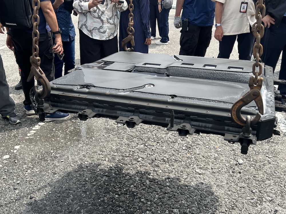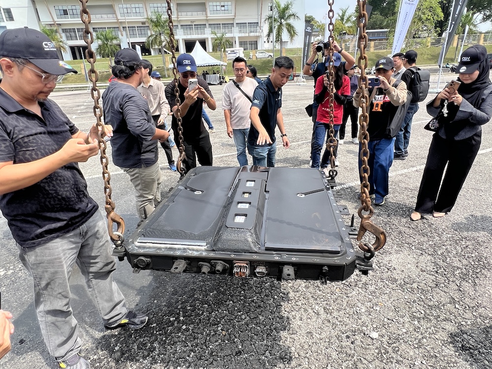 Naib Presiden Eksekutif Chery Corporate Malaysia (CCM), Men Lin Bo (empat dari kiri) berkata, ujian itu dilakukan secara terbuka bagi memberi keyakinan kepada pengguna terhadap teknologi bateri Chery.