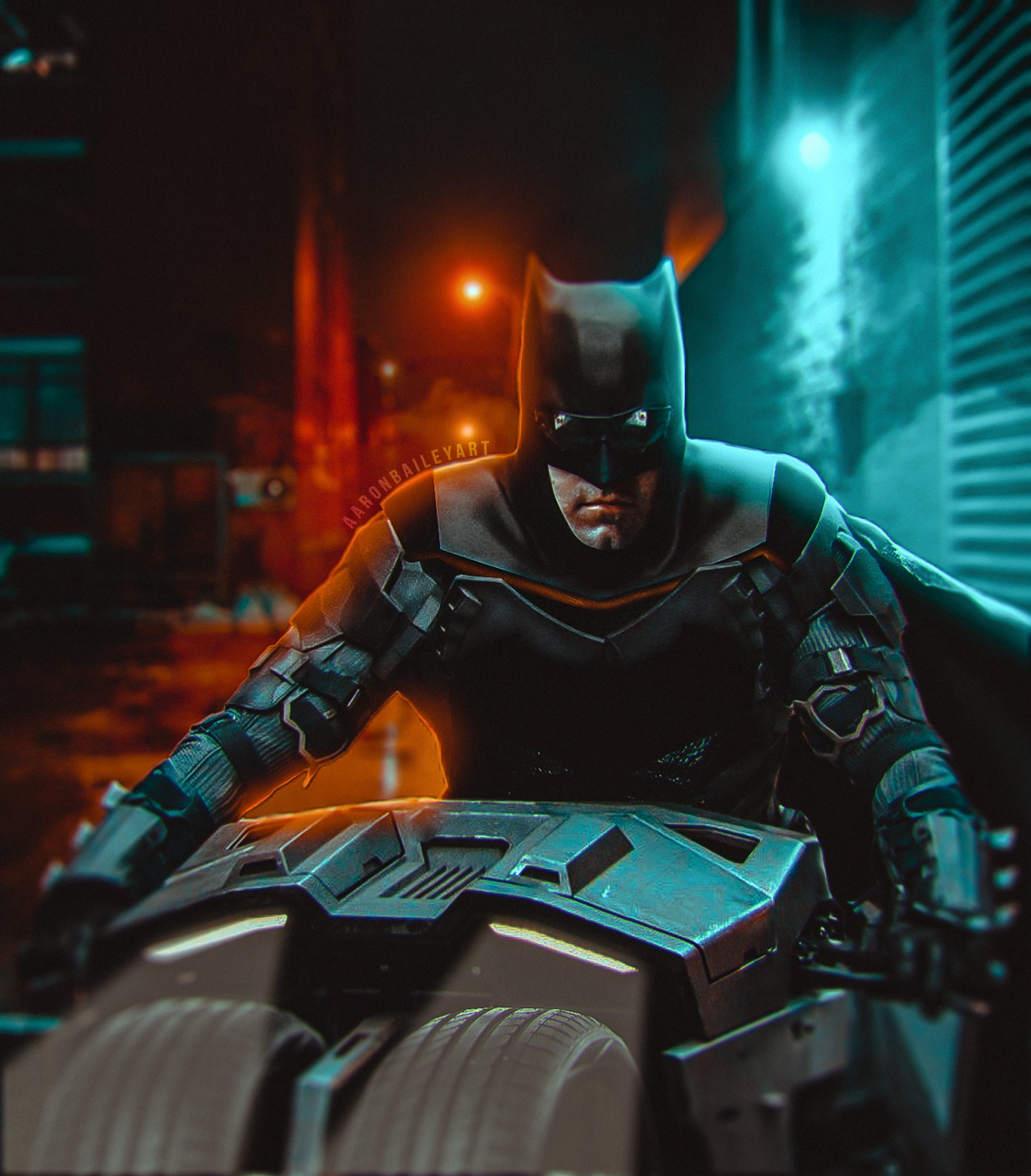 Berdasarkan foto acah The Flash yang dimuat naik di Twitter, aktor Affleck dirakamkan menunggang motosikal Batman baharu yang dikatakan dibangunkan berasaskan model konsep dihasilkan Dodge pada 2002, dengan nama Tomahawk. Motosikal itu dikuasakan enjin V10 9.8L yang diambil daripada kereta Dodge Viper.