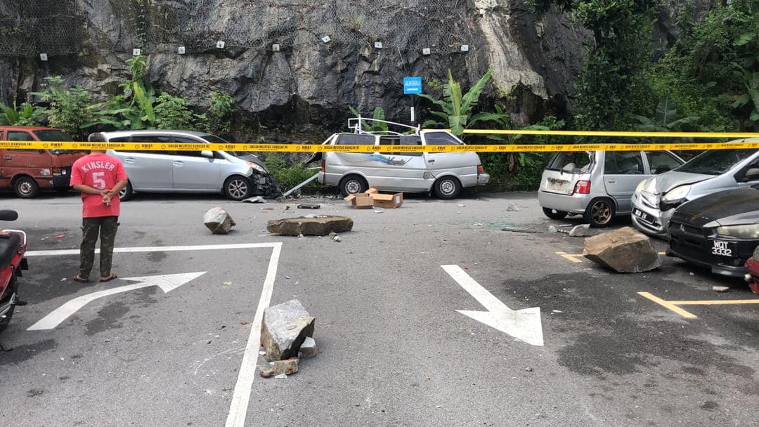 “Terdapat jatuhan batu di bahagian atas cerun batuan yang dilitupi wire netting yang telah dilaksanakan penstabilan sebelum ini menggunakan kaedah rock bolting, dan kaki cerun itu bukan dikhususkan untuk meletak kenderaan serta tiada petak parkir di lokasi itu.”