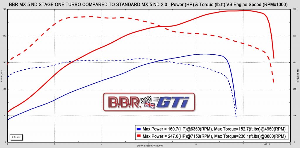 Menyedari hakikat tersebut, penala atau tuner terkenal Mazda, BBR memperkenalkan produk baharu, iaitu pakej Naik Taraf Pengecajturbo Tahap 1 untuk Mazda Miata MX-5 2.0 (model 2015 ke atas) yang mampu meningkatkan kuasa kepada 248hp pada 7,150rpm dan tork 320Nm (3,250rpm).