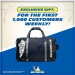 Selain itu, Michelin turut menawarkan hadiah berupa beg kepada pelanggan yang membeli empat tayar Michelin saiz 17 inci ke atas dan boleh ditebus di cawangan TyrePlus dan Michelin yang mengambil bahagian dalam tawaran tersebut.