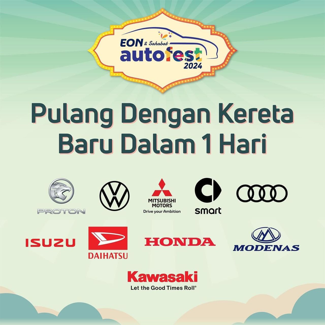- Ada macam-macam jenama kenderaan di bawah edaran EON seperti Proton, Audi, Volkswagen, Mitsubishi, smart, Isuzu, dan Daihatsu. Selain itu, sahabat-sahabat EON seperti Honda, Kawasaki dan Modenas turut bersama memeriahkan acara.