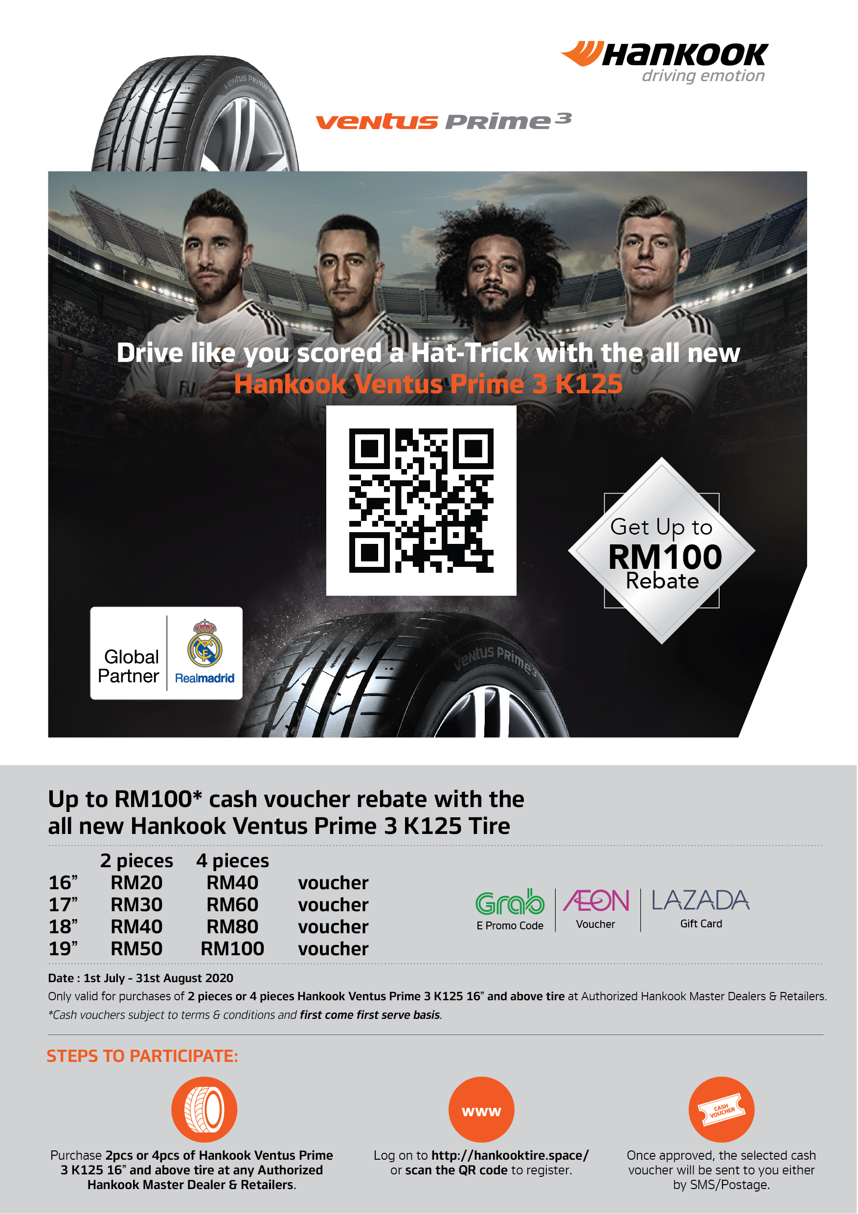 Kepada pelanggan yang mahu membeli tayar ini sepanjang tempoh promosi, anda perlu melayari laman web hankooktire.space atau mengimbas kod QR (disediakan pengedar atau penjual) untuk mendaftarkan maklumat peribadi.