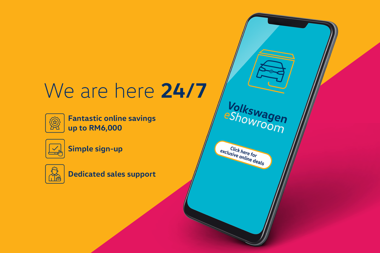 Pelanggan yang menempah kenderaan Volkswagen menerusi eShowroom akan menerima rebat bernilai RM4,000. Selain itu, pelanggan juga ditawarkan servis penghantaran percuma Volkswagen Home Delivery untuk pembeli yang kediamannya terletak dalam radius 20km dari pusat jualan.