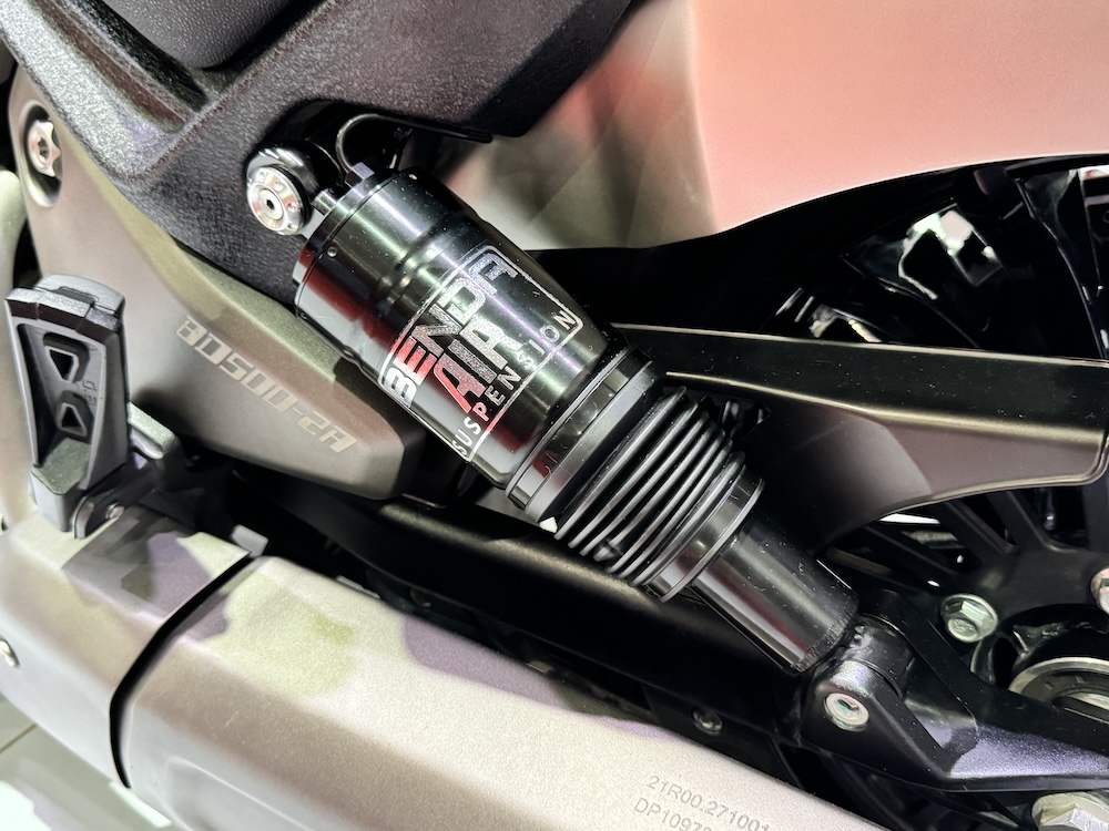 - Fork terbalik (USD) di depan dan dwi-absorber udara BENDA (airmatic).