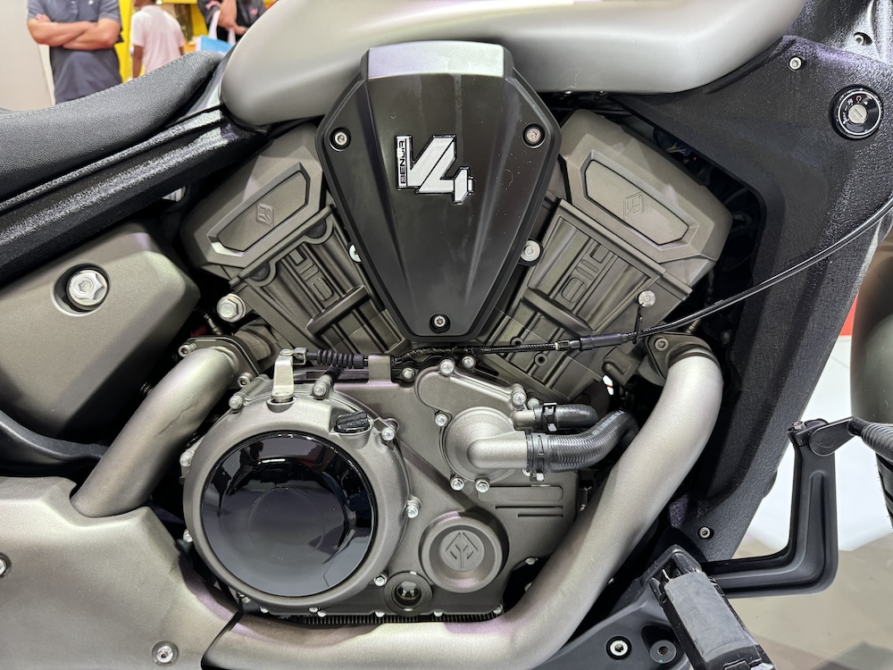 - Enjin 4-lejang V-Twin 475.6cc DOHC penyejukan cecair 8-injap dengan suntikan bahan api (FI), menawarkan output kuasa 47hp @ 8,800rpm dan tork 42Nm @ 6,700rpm.