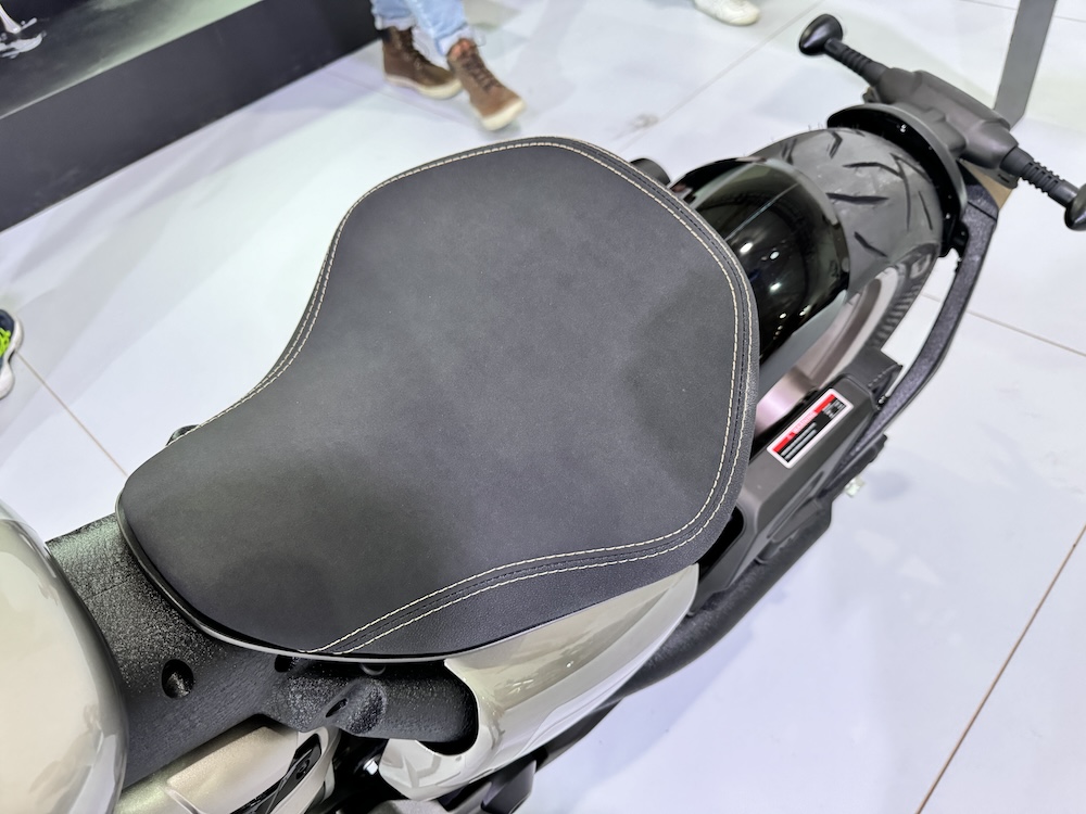 - Tinggi pelana 695mm dan jarak tinggi bumi 148mm.