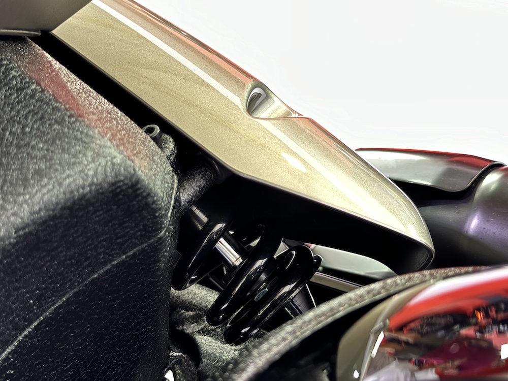 - Fork teleskopik di depan, dan monoshock belakang diposisi sebelah kanan.