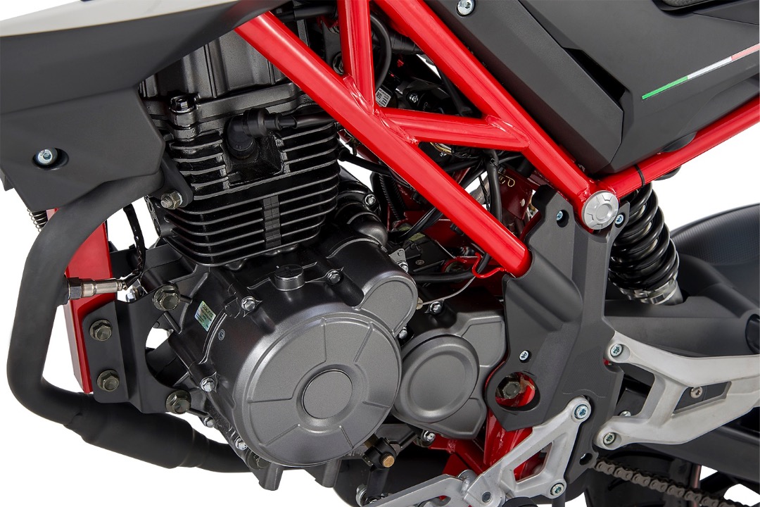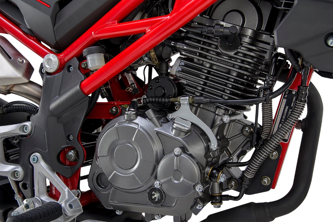Enjin TNT 135 daripada jenis penyejukan cecair, 4 injap dengan percikan api kembar (twin spark) SOHC dan turut dibekalkan penyejuk minyak dan penapis minyak. Seperti Grom dan Z125, TNT 135 ini dilengkapkan sistem suntikan bahan api, dan badan terotel 28mm. Sebagai tambahan, model ini dipadankan transmisi 5-kelajuan, juga lebih baik daripada Grom dan Z125 yang cuma 4-kelajuan.