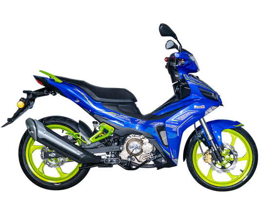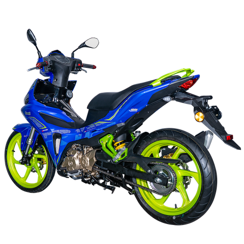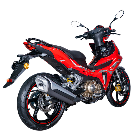 - Saiz tayar depan 80/80-17, manakala saiz tayar belakang 120/70-17.