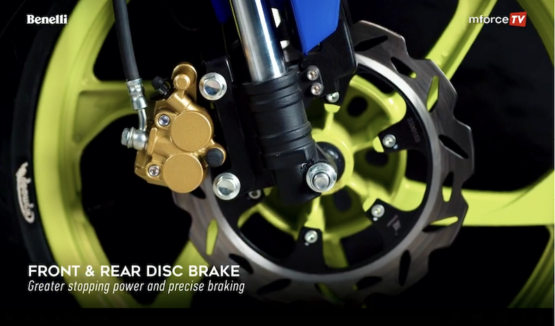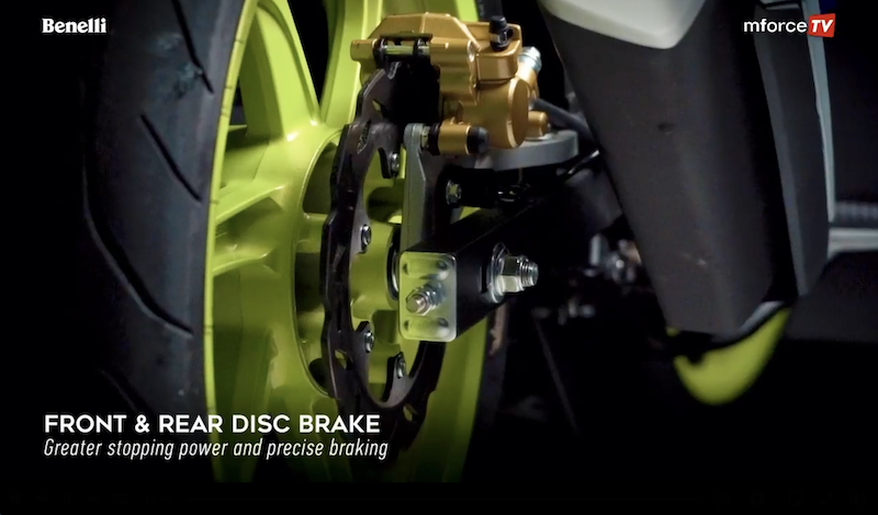- Sistem brek menggunakan cakera tunggal 240mm dengan kaliper dwi-piston (depan), dan cakera tunggal 220mm dengan kaliper piston tunggal (belakang). Varian SE dibekalkan tuil brek tangan dan tuil klac boleh laras.