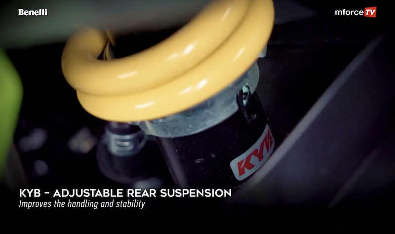 - Sistem suspensi dipasangkan fork terbalik (USD) di depan dan monoshock KYB (Kayaba) boleh laras di belakang memberikan tahap kestabilan dan pengendalian terbaik, terutama ketika di selekoh.