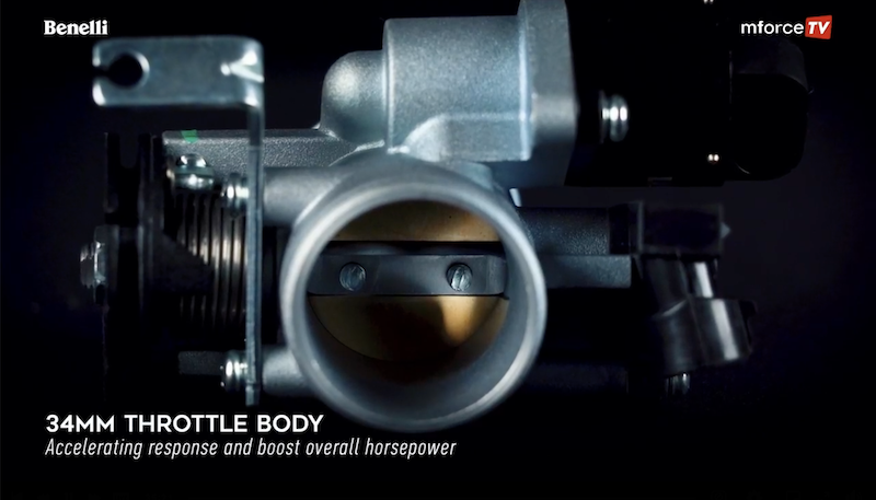 - Menggunakan terotel badan 34mm dengan tiga palam pencucuh untuk pembakaran lebih efisien. Sistem penghidup jenis elektrik dan tiada penghidup tendang (kick starter) disediakan sebagai sandaran.