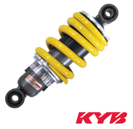 Suspensi: Fork terbalik (USD) dan travel 88mm (depan); Teleskopik spring koil redaman minyak Kayaba, monoshock dan travel 27mm (belakang)