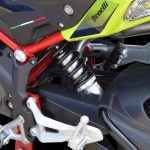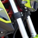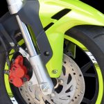 SUSPENSI: Fork terbalik (USD) 41mm; travel120mm (depan); Spring koil teleskopik (belakang)