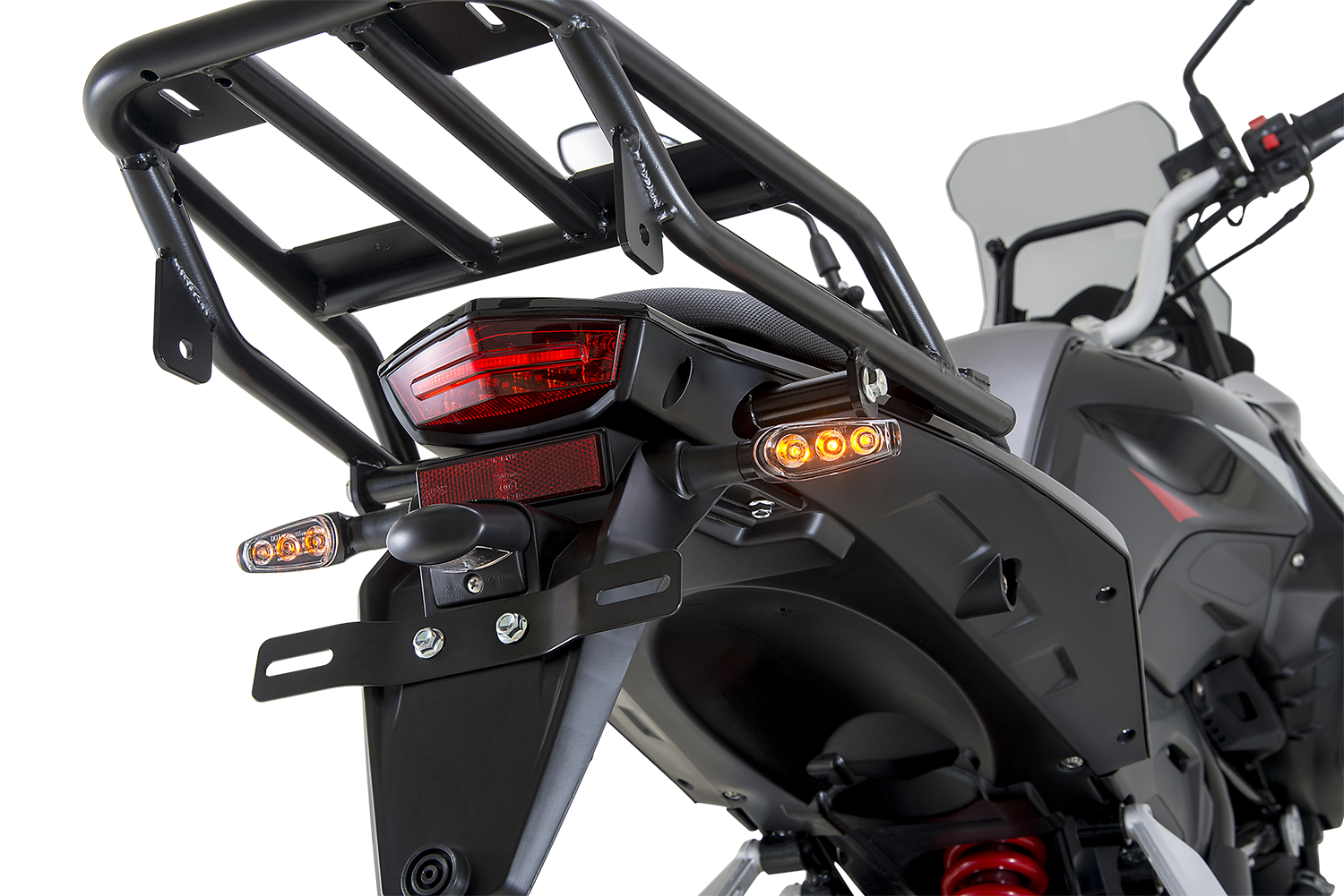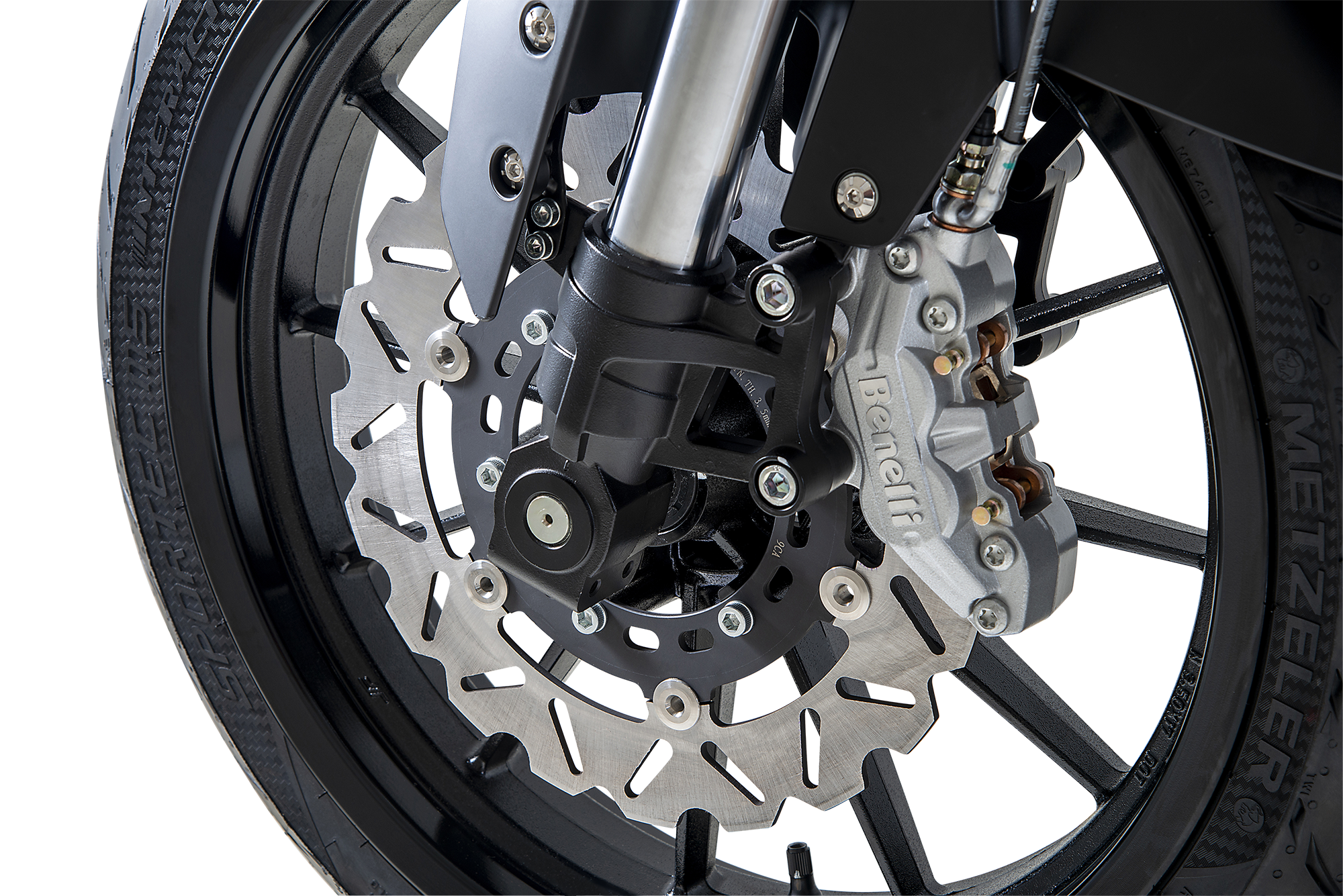 Sistem suspensi disokong fork terbalik (USD) 41mm di depan dan swingarm dengan monoshock di belakang. Sistem brek depan menggunakan cakera 280mm dan kaliper 4-piston, manakala brek belakang dipasangkan cakera 240mm dan kaliper piston tunggal untuk kuasa henti meyakinkan. Pasangan rim 17 inci dibalut set tayar depan 110/70 R17 dan belakang 150/60 R17. Pemuka menggunakan panel digital penuh.