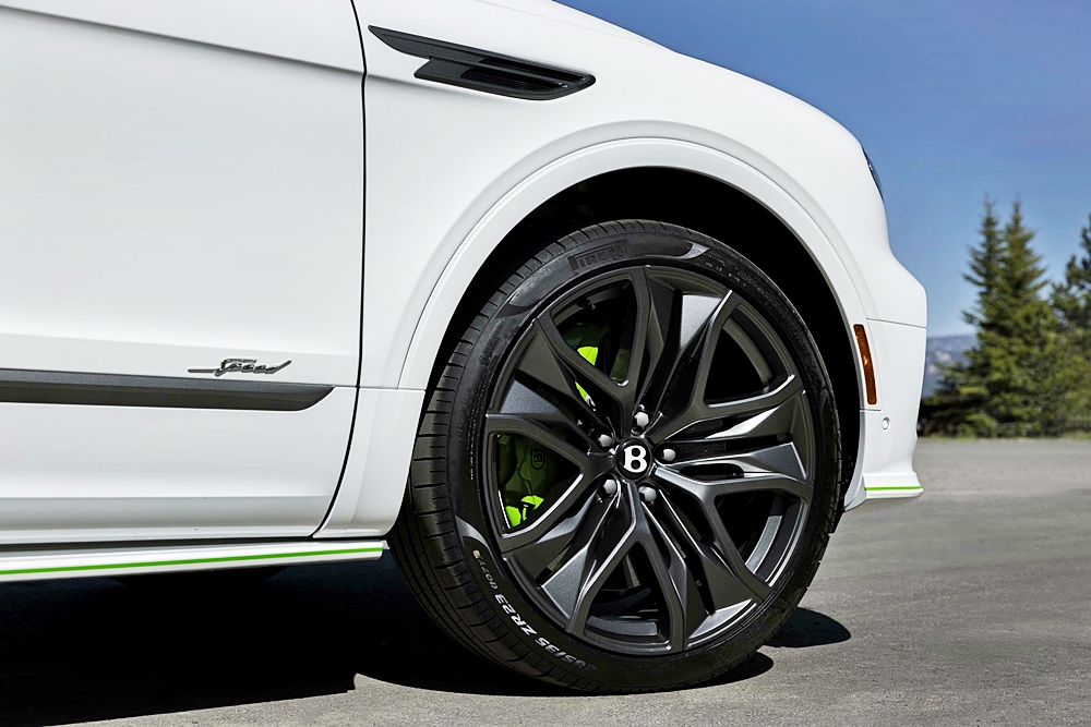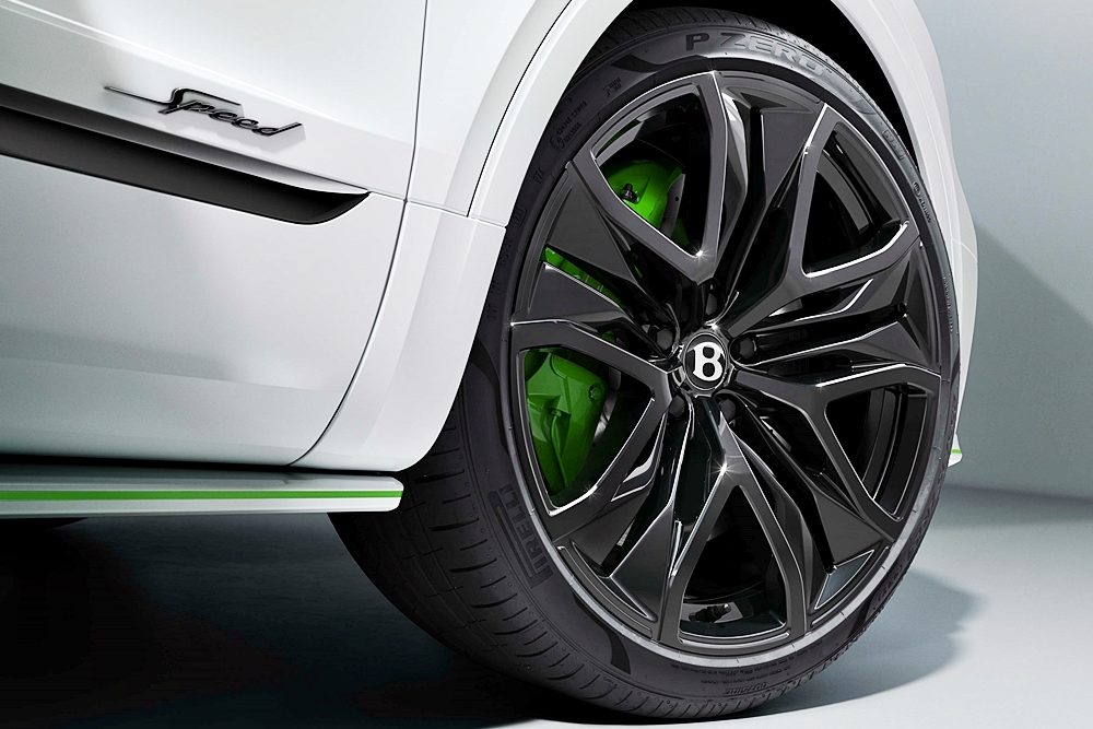 - Rim 23 Inci: Buat kali pertama dalam sejarah Bentley, rim Speed 23 inci adalah pilihan apabila brek seramik karbon dinyatakan yang datang dalam pilihan kemasan kelabu satin, hitam, atau hitam dan model cerah.