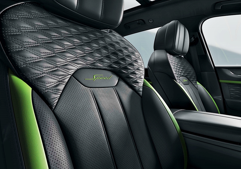 Dalaman berfokuskan prestasi - Rekabentuk Unik Speed: Rekaan dalaman mencerminkan tumpuan prestasi unik. Ciri standard seperti paparan maklumat pemandu khusus Speed, lencana Speed pada fasia penumpang dan pelapik sil pintu, dan lambang Speed sulaman pada atas kerusi.