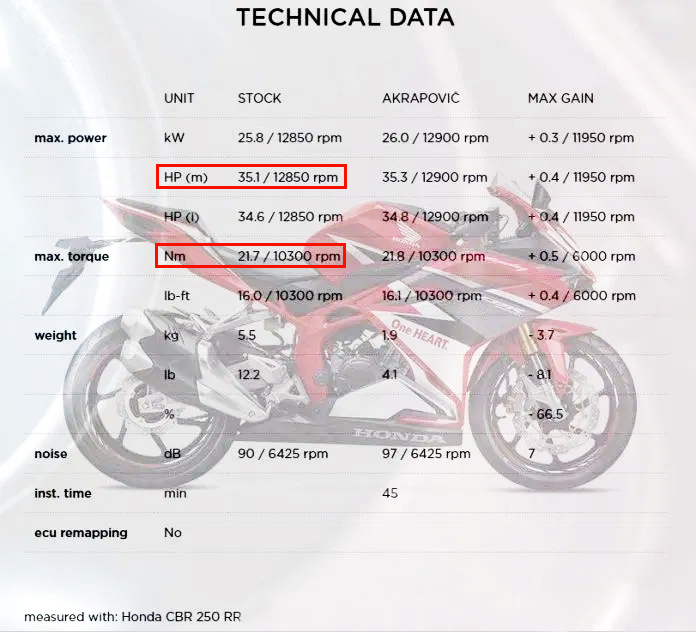 Sama seperti ujian dilakukan ke atas Kawasaki Ninja ZX-25R dan CBR250RR, ujian ini juga dijalankan Akrapovic Eropah menggunakan mesin dyno Superflow Windyn.
