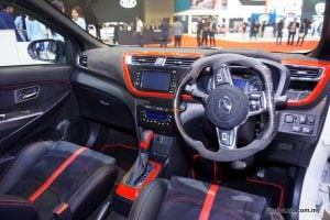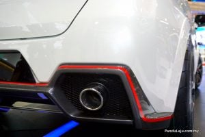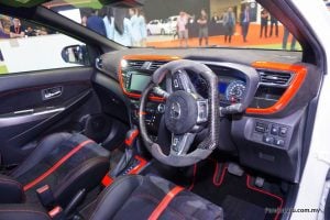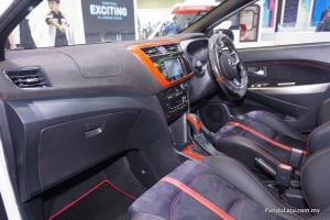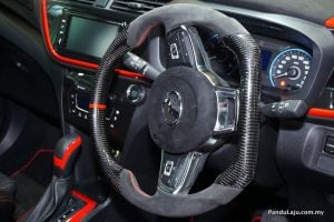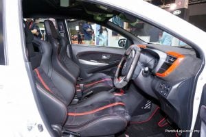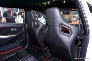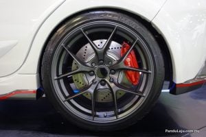Lebih tampak garang, bahagian roda dipadankan rim 17 inci dengan tayar 205/40 berserta brek Brembo. Malah, Myvi GT ini turut dipasangkan bumbung panoramik.