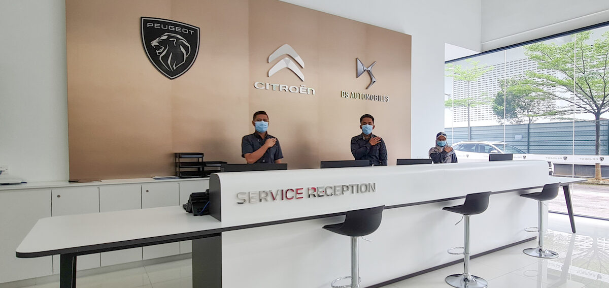 Pelanggan boleh membuat tempahan dengan menghubungi Pusat Servis di talian 03-5021 2300 (sambungan 2402/2403). Tempahan secara atas talian boleh dibuat melalui laman customer.peugeot.com.my Bagi khidmat bantuan jalanan, pelanggan boleh menghubungi Peugeot 24-jam di talian 1-800-22-3399.